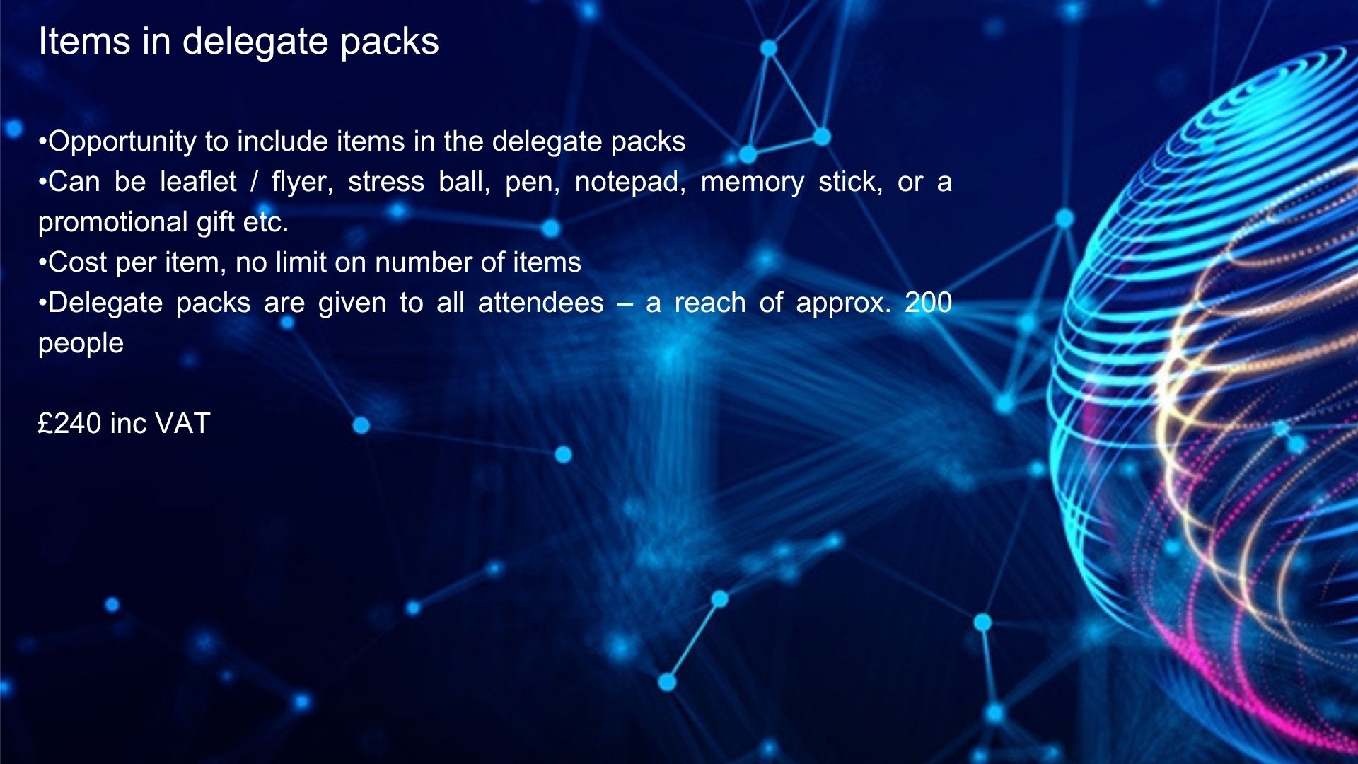 Follow this link to secure a sponsorship package or even add an item to the delegate bag!